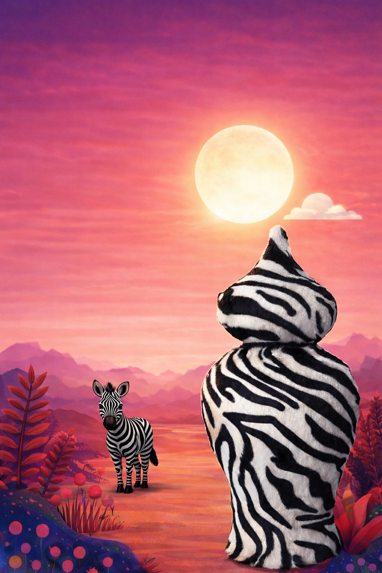 Башня хранит ритм шага и умение идти вперед, даже если путь извилист. Хранитель башни — Зебренок Полосатик, легкий и быстрый дух странствий. Он не стоит на месте: то спрячется в темной полосе, то выскочит в светлой. Иногда ночью он выбегает на край купола и смотрит вдаль — туда, где начинается новая дорога.